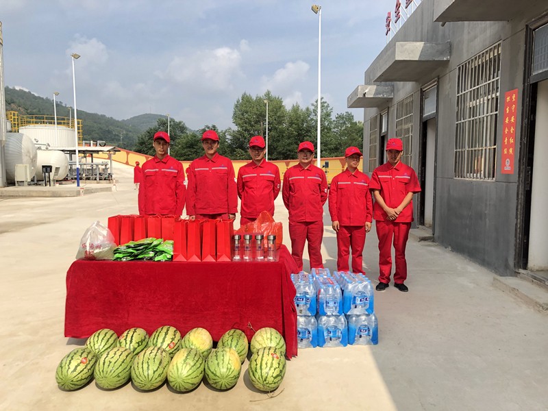 8月6日,集團公司黨委副書記、工會主席黃國全赴綠色能源公司延長油田寶塔采油廠油泥減量化處理站開展“夏季送清涼”活動,看望、慰問一線職工,給干部職工送去防暑降溫用品和組織的關心。