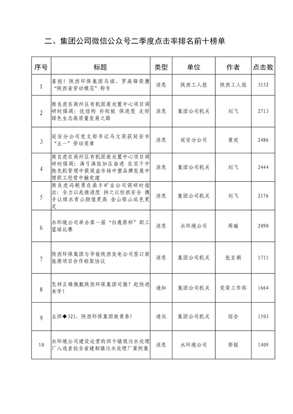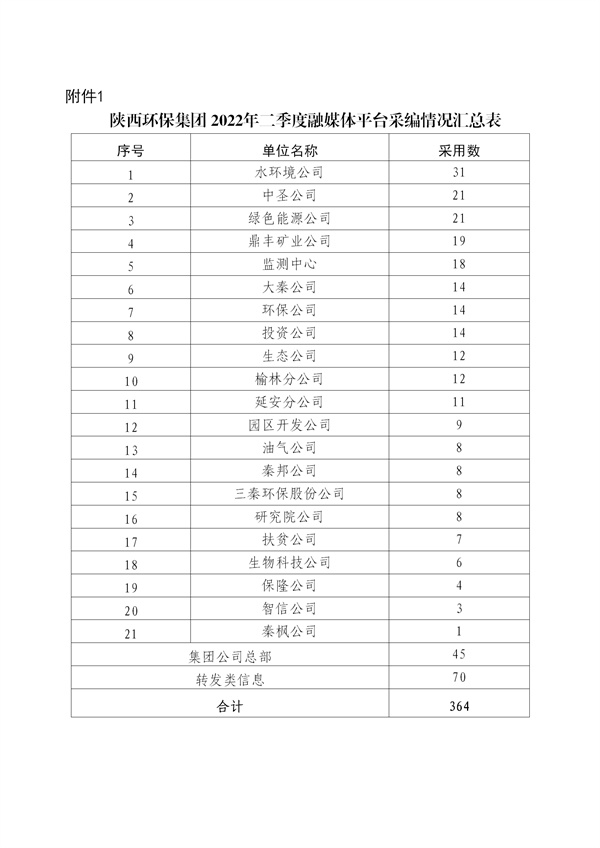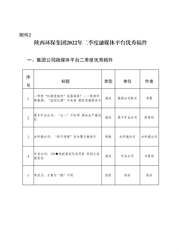 二季度集團融媒體平臺在各單位的大力支持與配合下及時有效宣傳了全集團在學(xué)習(xí)貫徹省第十四次黨代會精神、促進經(jīng)濟穩(wěn)增長、深化國資國企改革、加強創(chuàng)新合作、推進秦創(chuàng)原建設(shè)、強化黨建引領(lǐng)等方面取得的進展和成效,為陜西環(huán)保集團高質(zhì)量發(fā)展?fàn)I造了良好輿論氛圍?,F(xiàn)將2022年二季度集團公司融媒體平臺稿件采用及優(yōu)秀稿件評選情況通報如下: