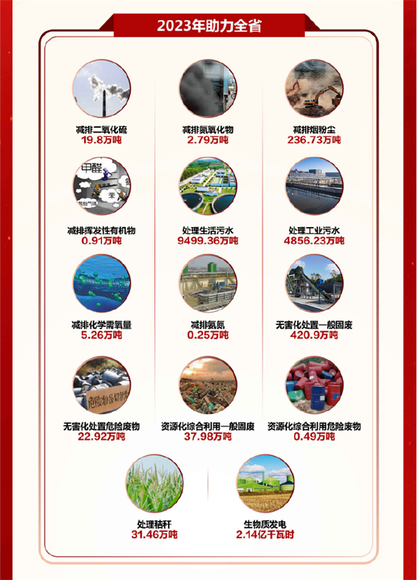 全年助力全省減排二氧化硫19.8萬(wàn)噸、氮氧化物2.79萬(wàn)噸、煙粉塵236.73萬(wàn)噸、揮發(fā)性有機(jī)物0.91萬(wàn)噸;處理生活污水9499.36萬(wàn)噸、工業(yè)污水4856.23萬(wàn)噸,減排化學(xué)需氧量5.26萬(wàn)噸、氨氮0.25萬(wàn)噸;無(wú)害化處置一般固廢420.9萬(wàn)噸、危險(xiǎn)廢物22.92萬(wàn)噸;資源化綜合利用一般固廢37.98萬(wàn)噸、危險(xiǎn)廢物0.49萬(wàn)噸;處理秸稈31.46萬(wàn)噸,生物質(zhì)發(fā)電2.13億千瓦時(shí),為全省打贏污染防治攻堅(jiān)戰(zhàn)發(fā)揮了“排頭兵”“主力軍”作用。