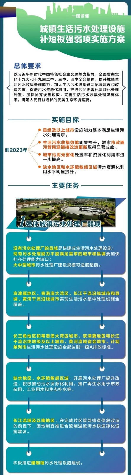 一圖讀懂|城鎮(zhèn)生活污水處理設(shè)施補(bǔ)短板強(qiáng)弱項(xiàng)實(shí)施方案