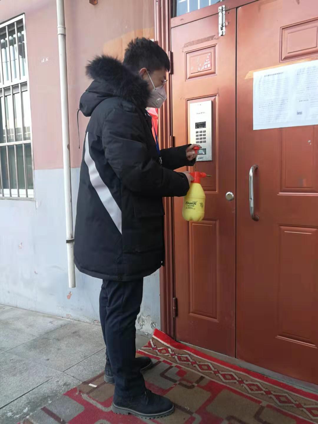 寒風(fēng)瑟瑟,一天下來手被凍得發(fā)青、腳凍得沒有知覺,即便如此王琦依然堅(jiān)持對小區(qū)所有樓道、電梯間、地下室進(jìn)行消毒處理,不放過任何角落。
