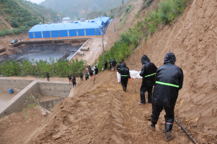 險情就是命令,綠色能源公司第一時間召開防汛抗災現(xiàn)場部署會,下發(fā)《關于做好近期防汛工作的緊急通知》,立即啟動防汛應急預案,迅速安排陜北區(qū)域各下屬單位做好抗洪防汛工作。面對嚴峻的防汛形勢,綠色能源公司全體一線抗災人員迅速投入狀態(tài),相關單位安全生產(chǎn)負責人帶隊前往寶塔、吳起、志丹、七里村等油泥減量化站進行巡查,對地勢低洼的安全薄弱區(qū)域采取堵、疏、排、舀等方式緊急預防,組織各站人員對排水渠、油泥池、雨水收集池等多處重點區(qū)域進行24小時不間斷巡邏,實行1小時一報告,確保第一時間發(fā)現(xiàn)險情并予以排除。