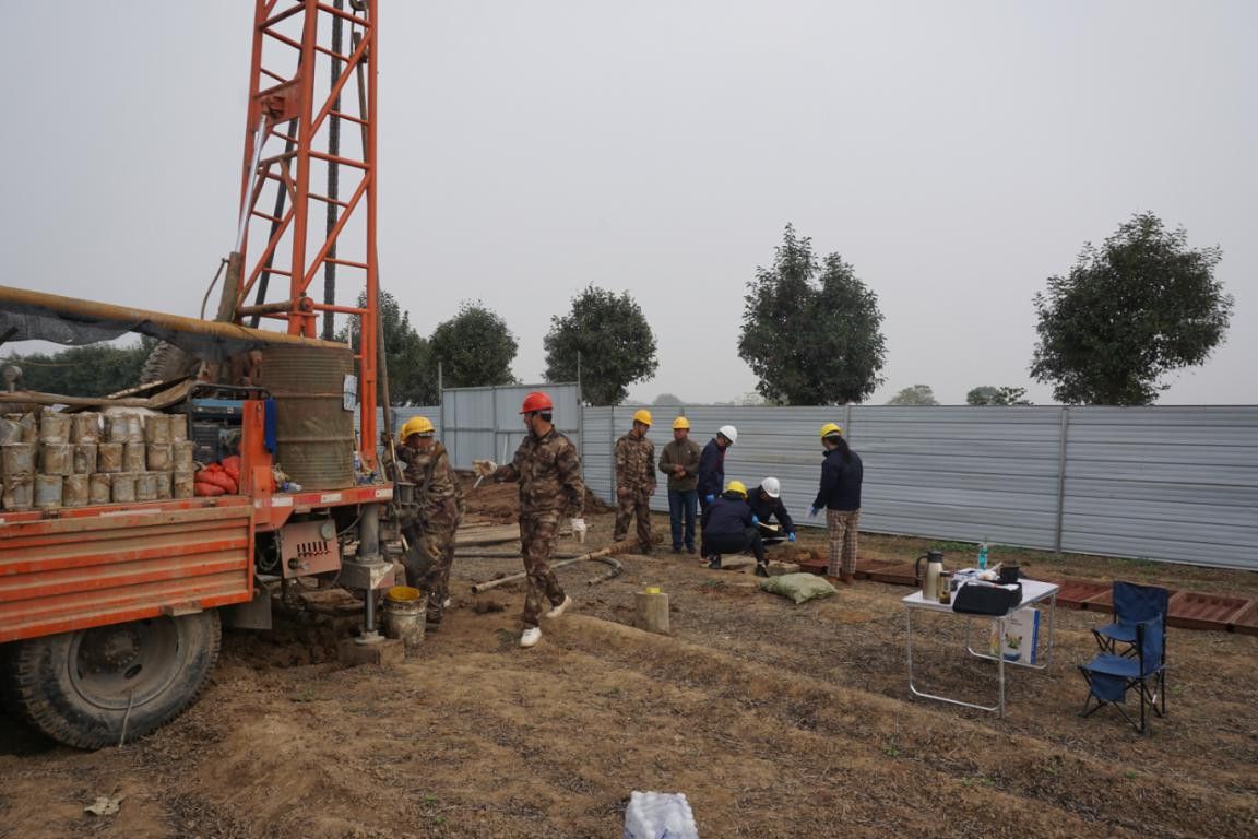 伴隨著發(fā)動機的轟鳴聲,高高的井架穩(wěn)穩(wěn)升起,高速旋轉(zhuǎn)的鉆頭帶動著長長的鉆桿緩緩駛向地層深處……近日,經(jīng)過詳細(xì)的方案設(shè)計、多次嚴(yán)密的專家論證、漫長而復(fù)雜的征地手續(xù),中圣公司承擔(dān)的某大型地下水污染修復(fù)項目正式破土動工。