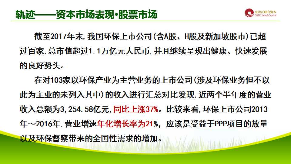 王國(guó)成表示,陜西環(huán)保集團(tuán)成立近三年來(lái)取得了令行業(yè)矚目的成就,希望雙方在循環(huán)經(jīng)濟(jì)和資源綜合利用、特殊工業(yè)污水處理、尾礦綜合利用等領(lǐng)域加大合作力度,共同為中國(guó)環(huán)保事業(yè)貢獻(xiàn)力量。他還以《環(huán)保新階段——大形勢(shì)創(chuàng)造大機(jī)會(huì),大時(shí)代需要大平臺(tái)》為題,做了專題講座,從中國(guó)環(huán)保產(chǎn)業(yè)發(fā)展的三個(gè)階段、中國(guó)環(huán)保企業(yè)的現(xiàn)階段資本市場(chǎng)表現(xiàn)、中國(guó)環(huán)保企業(yè)與國(guó)際巨頭的差距三個(gè)方面進(jìn)行了詳細(xì)解讀。