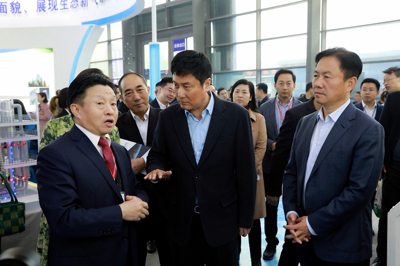 開幕式后,郭大為一行參觀了陜西環(huán)保集團“深入推進四大保衛(wèi)戰(zhàn),勇做陜西污染防治排頭兵”主題展區(qū)。在煤礦疏干水綜合處置項目模型、“一縣(區(qū))一策”精準治霾、垂直流迷宮(VFL)污水處理技術演示模型、智慧環(huán)保綜合平臺等環(huán)保設施設備展示區(qū)前,詳細聽取了熊良虎關于集團圍繞全省“四大保衛(wèi)戰(zhàn)”所做工作情況的介紹。郭大為對環(huán)保集團五年來取得的發(fā)展成就給予高度評價,對集團提升自主研發(fā)、加大吸收引進國際先進技術助力全省生態(tài)環(huán)境持續(xù)向好所作的努力表示贊賞。