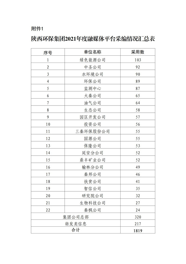 為加強(qiáng)集團(tuán)公司門戶網(wǎng)站、微信公眾號、新浪微博、視頻號等融媒體平臺的稿件采編工作,鼓勵(lì)廣大通訊員圍繞企業(yè)中心工作撰寫出高質(zhì)量的稿件,發(fā)揮優(yōu)秀稿件的示范作用,為集團(tuán)高質(zhì)量發(fā)展鼓與呼,按照集團(tuán)公司《關(guān)于建立政務(wù)信息采用情況通報(bào)和優(yōu)秀稿件評選制度的通知》(陜環(huán)司函〔2021〕31號)文件要求,現(xiàn)將2021年度集團(tuán)公司融媒體平臺稿件采用及2021年四季度優(yōu)秀稿件評選情況通報(bào)如下: