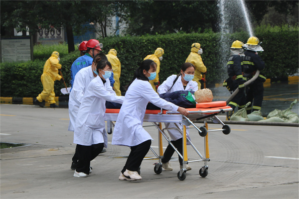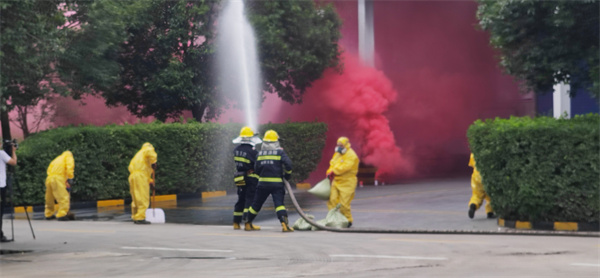 本次演練模擬工人不小心將堿性廢液倒入有機(jī)廢酸噸桶致使酸堿混合,噸桶內(nèi)發(fā)生化學(xué)反應(yīng),短時(shí)間內(nèi)大量放熱,達(dá)到有機(jī)廢酸燃點(diǎn)起火致突發(fā)環(huán)境事件企業(yè)、政府先后啟動(dòng)應(yīng)急響應(yīng)全過程。