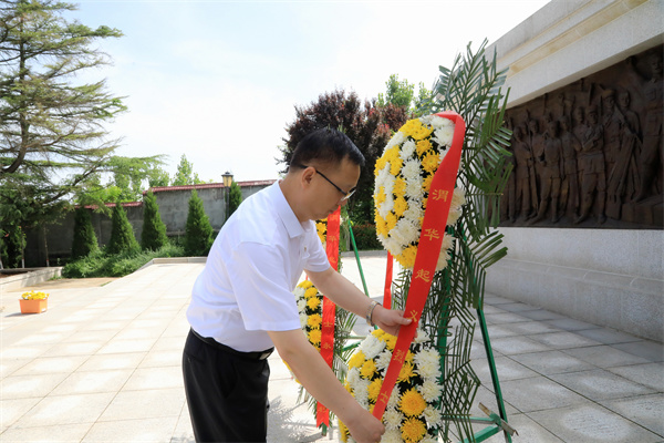 蒼松肅立,翠柏靜哀,以中共陜西環(huán)保產(chǎn)業(yè)集團(tuán)有限責(zé)任公司委員會(huì)、陜西環(huán)保產(chǎn)業(yè)集團(tuán)有限責(zé)任公司名義敬獻(xiàn)的兩個(gè)花籃一字排開(kāi),寄托著對(duì)革命先烈的深切緬懷和崇高敬意。集團(tuán)公司黨委書(shū)記郝軍亮緩步上前,仔細(xì)整理花籃緞帶?,F(xiàn)場(chǎng)黨員面向紀(jì)念碑鞠躬致敬,集體繞行瞻仰渭華起義烈士紀(jì)念碑。隨后,大家走進(jìn)渭華起義陳列大廳,跟隨講解員的講解,從渭華起義爆發(fā)的歷史背景、選址原因、準(zhǔn)備工作、主要經(jīng)過(guò)等方面追憶崢嶸歲月。在一張張照片、一份份資料、一件件實(shí)物前,大家不時(shí)駐足觀看、交流討論,強(qiáng)烈感受革命先烈們?yōu)榱嗣褡濯?dú)立、人民解放拋頭顱、灑熱血的英雄氣概。