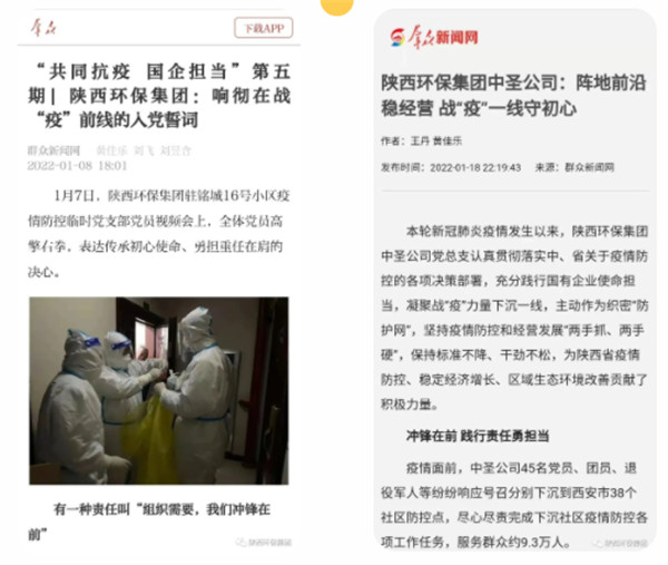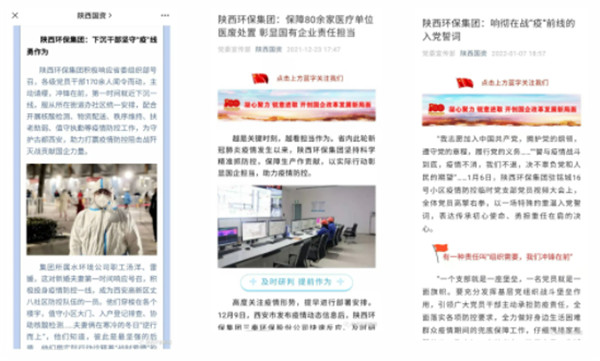 2022年1月1日、11日、12日,學(xué)習(xí)強(qiáng)國對(duì)陜西環(huán)保集團(tuán)沖鋒在一線的志愿者進(jìn)行報(bào)道。