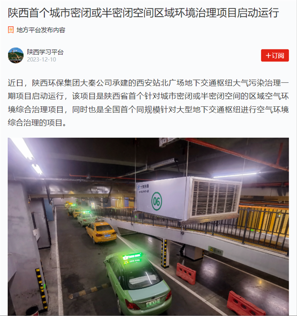 近日,學(xué)習(xí)強(qiáng)國(guó)、中國(guó)環(huán)境報(bào)、陜西科技報(bào)、三秦企業(yè)文化網(wǎng)、陜西國(guó)資等主流媒體對(duì)陜西環(huán)保集團(tuán)大秦公司承建的全省首個(gè)城市密閉或半密閉空間區(qū)域環(huán)境治理項(xiàng)目“西安站北廣場(chǎng)地下交通樞紐大氣污染治理一期項(xiàng)目”大氣污染治理成效等情況進(jìn)行了報(bào)道,現(xiàn)刊載如下,以饗讀者。